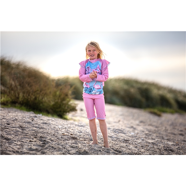 Swimpy UV-Shirt Flamingo ist ein niedliches UV-Shirt in Rosa und Blau mit Rüschen und Flamingo-Muster auf der Vorderseite. Das UV-Shirt schützt vor UV-Strahlen und entspricht UPF50+. Das Shirt ist aus einem schnell trocknenden, elastischen Material gefertigt, das OEKO-Tex zertifiziert und frei von schädlichen Substanzen ist. Alle Produkte von Swimpy sind nach UV-Standard 801 zertifiziert, was garantiert, dass das Kleidungsstück seinen UV-Schutz auch nach Gebrauch und Wäschen beibehält.