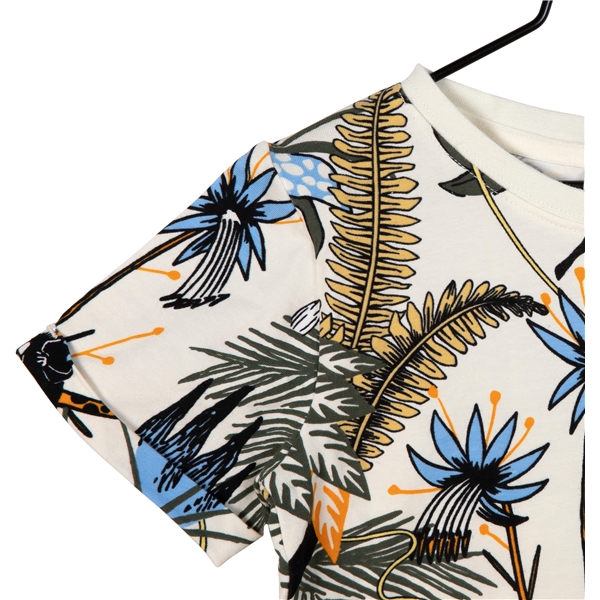 Ein weiches und bequemes Mumin T-Shirt für Kinder. Mit rundem Halsausschnitt und kurzen Ärmeln. Das Shirt ist aus einer GOTS-zertifizierten organischen Baumwollmischung hergestellt.