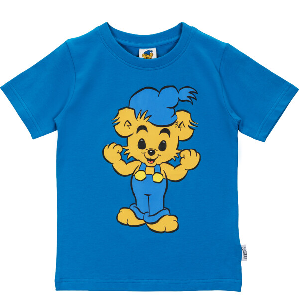 Ein weiches und bequemes Bamse T-Shirt für Kinder. In geradem Schnitt mit kurzen Ärmeln, rundem Halsausschnitt und lustigem Aufdruck vorne. Das Produkt enthält zertifizierte Bio-Baumwolle.