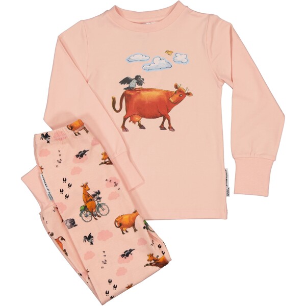 Zweiteiliger Pyjama mit Mamma Mu aus weicher und angenehmer Bio-Baumwolle. Der Pyjama besteht aus einer Hose mit Gummizug in der Taille und breiten Bündchen sowie einem langärmeligen Shirt, ebenfalls mit Bündchen.