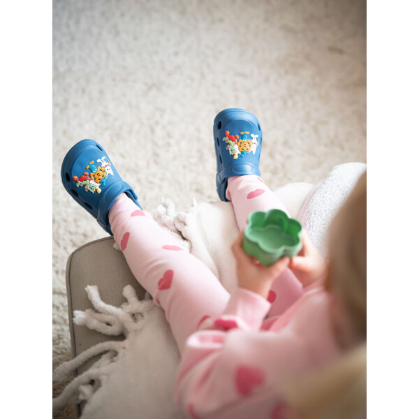 Die Foppa-Pantoffeln sind aus weichem und leichtem Material gefertigt, das den bestmöglichen Komfort für kleine Füße bietet. Die flexible und strapazierfähige Sohle sorgt für guten Halt auf sowohl trockenen als auch rutschigen Oberflächen, was die Pantoffeln perfekt für sowohl das Spielen drinnen als auch für die Sommerabenteuer draußen macht. Und wenn sie schmutzig werden, können sie einfach unter dem Wasserhahn abgespült werden.