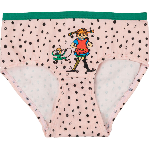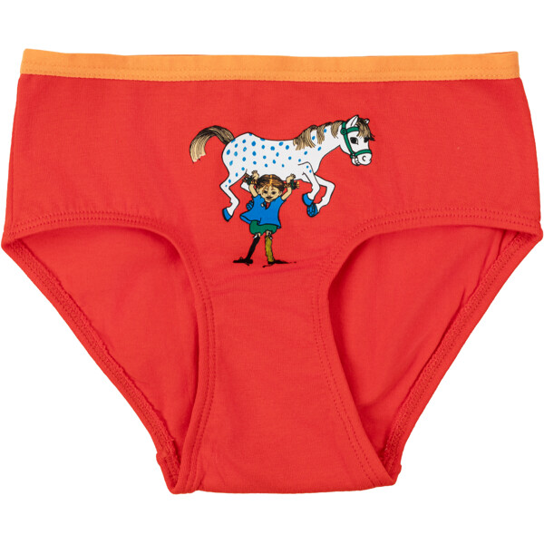 Weiche und bequeme Pippi Langstrumpf-Slips für Kinder. 2er-Pack mit einem Slip in Rosa und dem anderen in Rot, beide mit Druck vorne und kontrastfarbenen dünnen Kanten oben. Hergestellt aus einer weichen Baumwollmischung. Öko-Tex.