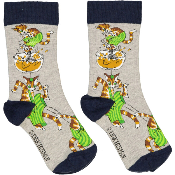 Machen Sie den Alltag ein wenig lustiger mit diesen farbenfrohen Kinderstrümpfen mit Motiven von den beliebten Figuren Pettersson und Findus! In diesem 2er-Pack erhalten Sie zwei verschiedene Muster – eines mit Pettersson und seinen klassischen Zimtschnecken und eines mit Findus in voller Fahrt, genau so, wie wir ihn kennen. Perfekt für kleine Füße, die nie stillstehen! Sie behalten Farbe und Form auch nach vielen Abenteuern in der Waschmaschine.