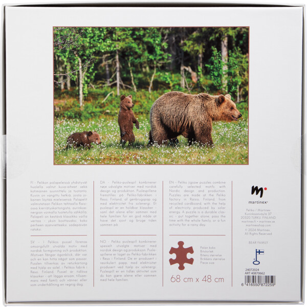 In Pelikos Puzzles vereinen sich sorgfältig ausgewählte Motive mit nordischem Design und Produktion. Die Motive fangen Momente ein, in denen jeder etwas Passendes finden kann. Puzzles sind zeitlose Klassiker - zum Alleinlegen, gemeinsam mit Familie und Freunden oder als Unterhaltung an einem regnerischen Tag.