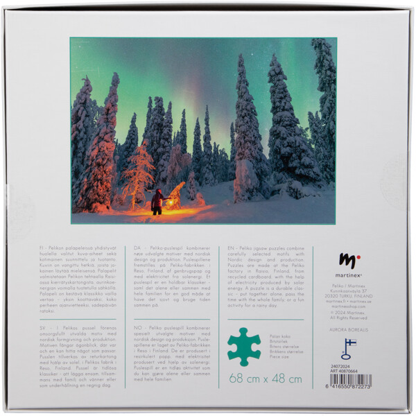 In den Puzzles von Peliko vereinen sich sorgfältig ausgewählte Motive mit nordischem Design und Produktion. Die Motive fangen Momente ein, in denen jeder etwas Passendes finden kann. Puzzles sind zeitlose Klassiker - zum Alleinlegen, gemeinsam mit Familie und Freunden oder als Unterhaltung an einem regnerischen Tag.