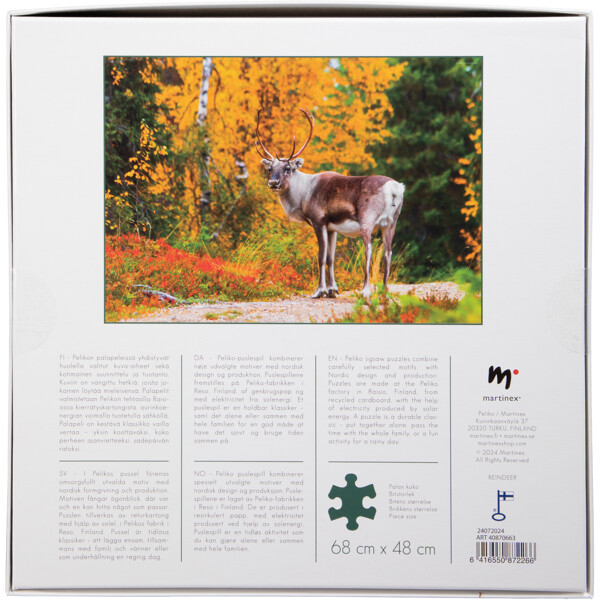 In Pelikos Puzzles vereinen sich sorgfältig ausgewählte Motive mit nordischem Design und Produktion. Die Motive fangen Momente ein, in denen jeder etwas Passendes finden kann. Puzzles sind zeitlose Klassiker - zum Alleinlegen, gemeinsam mit Familie und Freunden oder als Unterhaltung an einem regnerischen Tag.