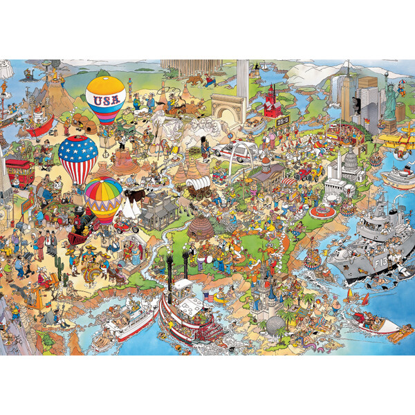 Die Karte der USA wurde von Jan van Haasteren selbst gezeichnet und enthält viele wiedererkennbare Situationen.
