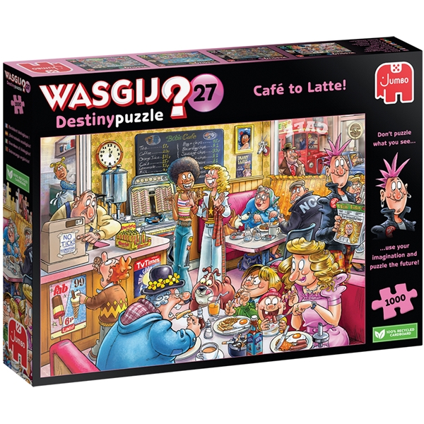 Betreten Sie eine lebhafte Café-Szene aus vergangenen Zeiten mit dem Wasgij Café to Latte-Puzzle. Diese lebendige Herausforderung mit 1000 Teilen fängt einen Moment in der Zeit ein, voller Retro-Charme und skurriler Charaktere. Jedes Teil zieht Sie in eine Geschichte hinein, in der jeder Charakter eine Schicht von Intrigen und Humor hinzufügt.