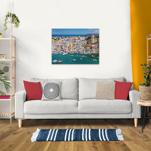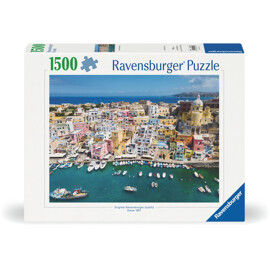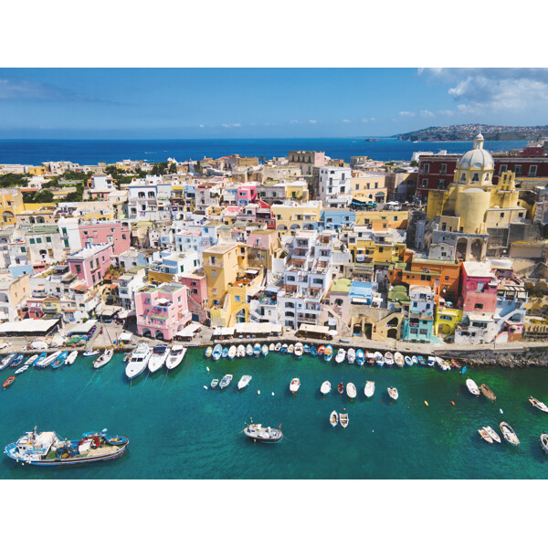 Das Puzzle mit 1500 Teilen "The Colors Of Procida" zeigt einen herrlichen Blick auf die wunderschöne Pastellinsel vor Neapel, Italien.