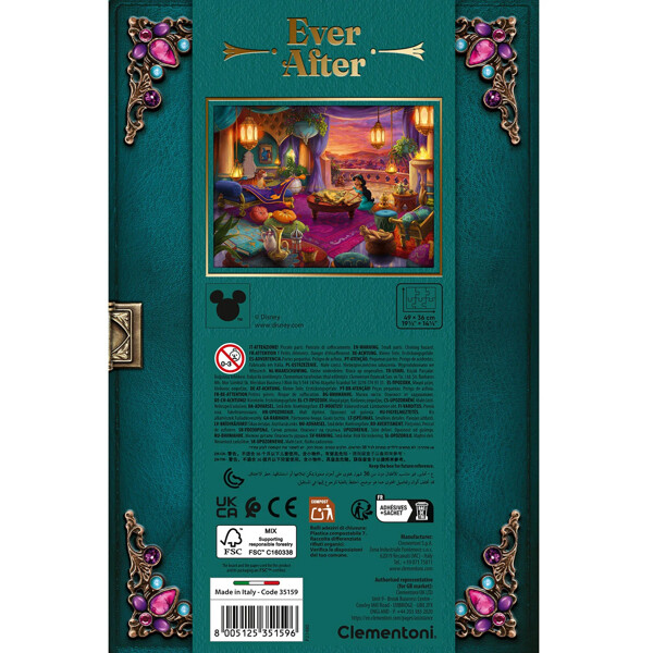 Dieses 500-teilige Puzzle bietet ein Premium-Erlebnis mit einer wunderschön künstlerischen Darstellung von Disneys Prinzessin Jasmin. Das einzigartige Bild wurde mit zusätzlichen Details und einem raffinierten Design verstärkt, was es zu einem herausragenden Puzzle für alle Puzzle-Enthusiasten macht. Die Verpackung hat eine Soft-Touch-Beschichtung und glänzende Oberflächen auf den Edelsteinen, was einen Hauch von Eleganz verleiht und es zu einem perfekten Sammlerstück für Ihr Bücherregal macht.