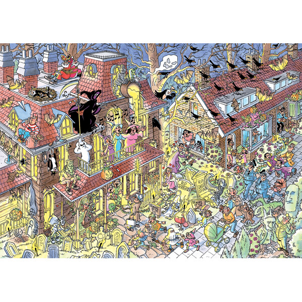 Die Familie Jan van Haasteren stürzt sich in Halloween. Vampire, Zombies und alle möglichen Monster und mythischen Kreaturen tauchen beim Süßes oder Saures auf.