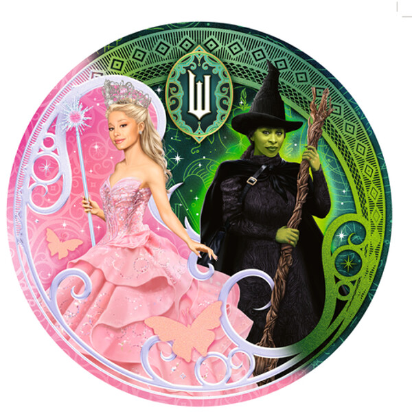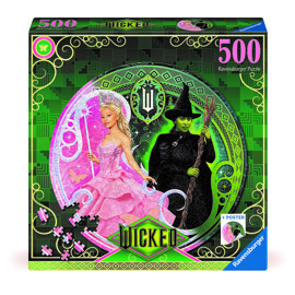 Treten Sie ein in eine bezaubernde Welt mit diesem fesselnden 500-teiligen runden Puzzle, inspiriert von dem beliebten Broadway-Musical "Wicked". Begleiten Sie Elphaba und Glinda auf ihrer außergewöhnlichen Reise von unwahrscheinlichen Freundinnen zu den ikonischen Wicked Witch of the West und Glinda the Good.
