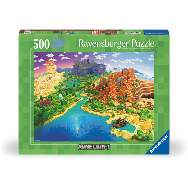 Puzzle 500 Teile World of Minecraft zeigt einen herrlichen Überblick über die Minecraft-Welt.