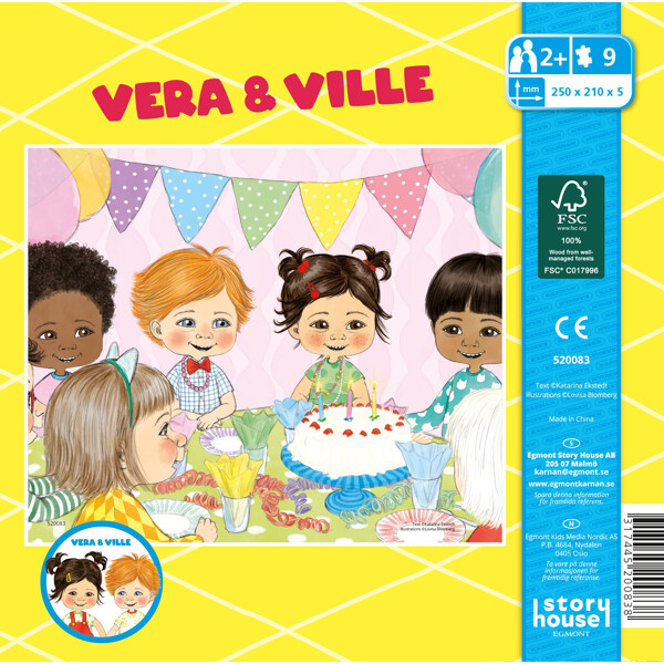Ein schönes Holzpuzzle mit den Freunden Vera und Ville. Begleite Vera und Ville zu einer Feier mit ihren Freunden.