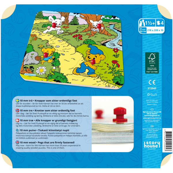 Ein lustiges und lehrreiches Puzzle mit 4 Teilen, bei dem Bamse mit seinen Freunden in der Natur ist.
