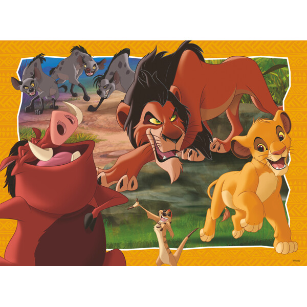 Puzzle XXL 200 Teile Lion King ist ein schönes Puzzle mit Simba, Pumba, Timon, Scar und den Hyänen aus Disneys Der König der Löwen!
