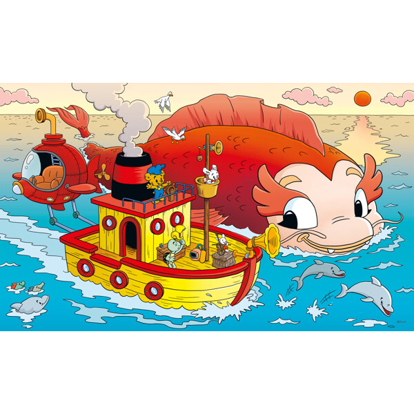Puzzle 100 Teile Bamse Havets Hemlighet ist ein schönes Papp-Puzzle mit Bamse und seinen Freunden. Die Freunde sind mit Victoria auf dem Meer unterwegs und treffen auf einen sehr großen Fisch.