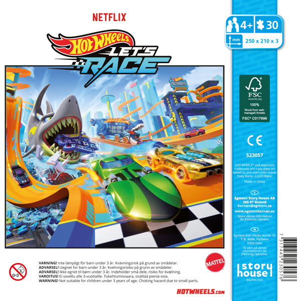 Ein 30-teiliges Holzpuzzle mit Motiven der coolen Autos von Hot Wheels.