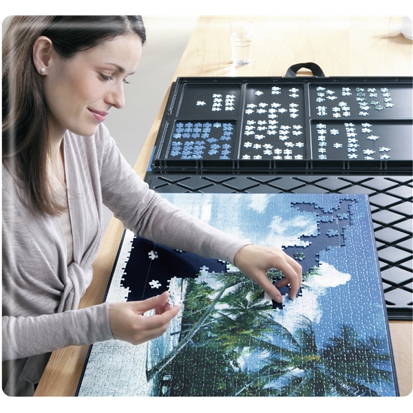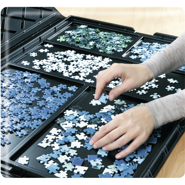Puzzle-Matte mit Aufbewahrung für 300-1000 Teile ist eine clevere Aufbewahrungslösung mit fünf Fächern, um die Puzzleteile zu verstauen. Es wird auch eine Puzzlematte mitgeliefert, auf der Puzzles mit 300-1000 Teilen gelegt werden können, was es einfach macht, Ihr Puzzle vom Tisch zu entfernen oder mit in die Hütte zu nehmen.