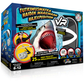 Enthält: - VR-Brille - Ausgrabungsset - Megalodon-Fossil - 40-seitiges Buch-