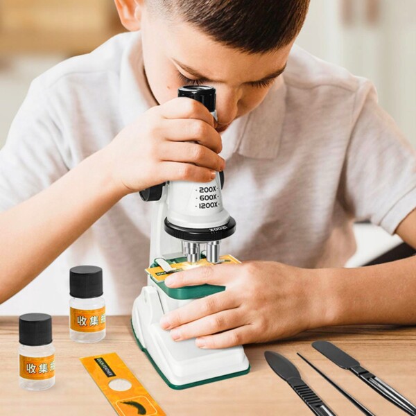Ein klassisches Mikroskop mit Zubehör.