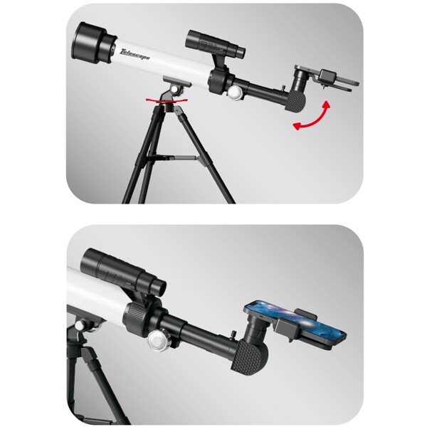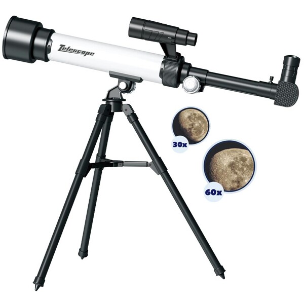 Ein cooles Teleskop mit Stativ, Handyhalterung und austauschbaren Okularen mit 30x und 60x Vergrößerung.