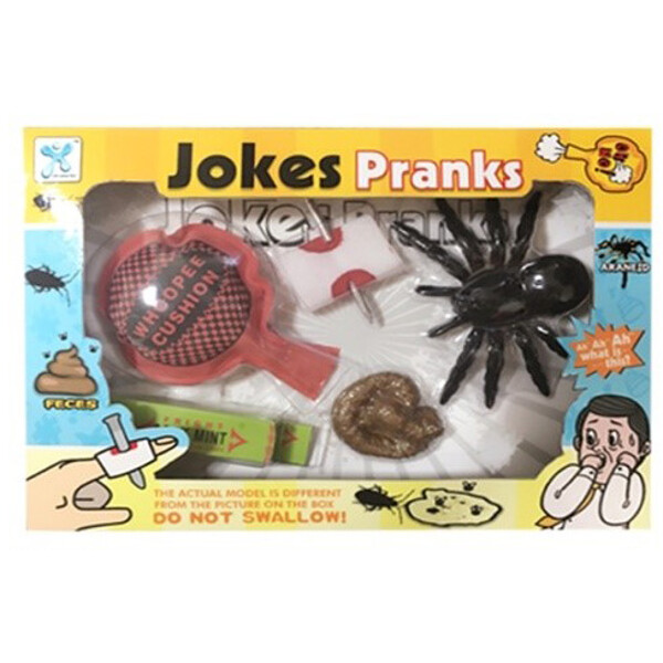 Ein 5-teiliges Set mit verschiedenen Scherzartikeln. Klassiker wie Furzkissen, Spinne, Kaugummipackung, Nagel im Pflaster und Kothaufen!