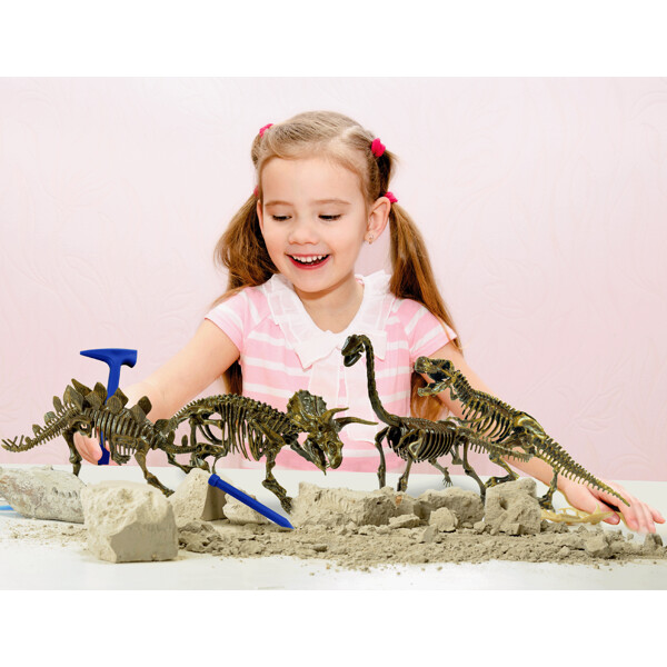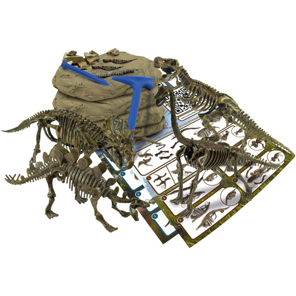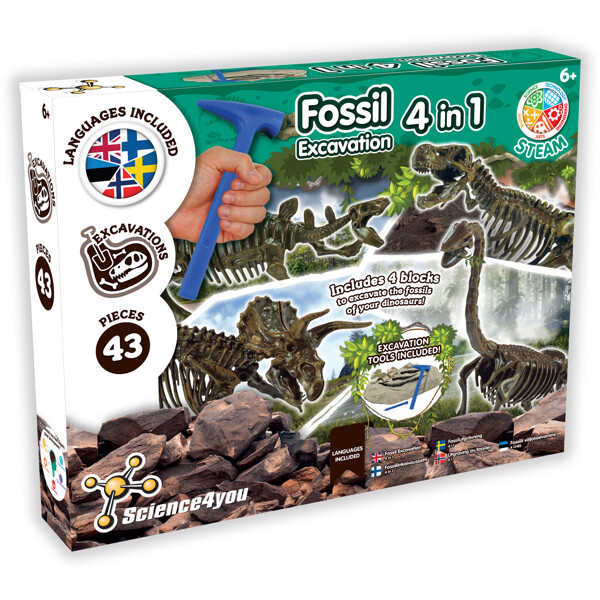 Erkunden Sie die faszinierende Welt der Paläontologie, indem Sie 4 erstaunliche Fossilien entdecken: Triceratops, T-Rex, Stegosaurus und Velociraptor. Lernen Sie über Fossilien, das Aussterben der Dinosaurier und professionelle Ausgrabungstechniken.