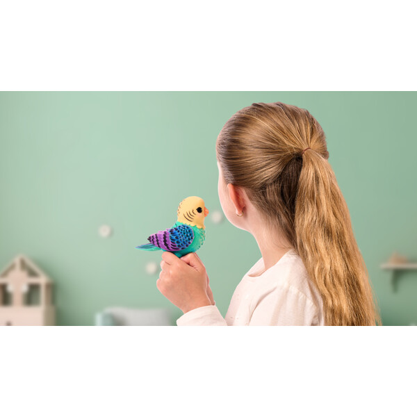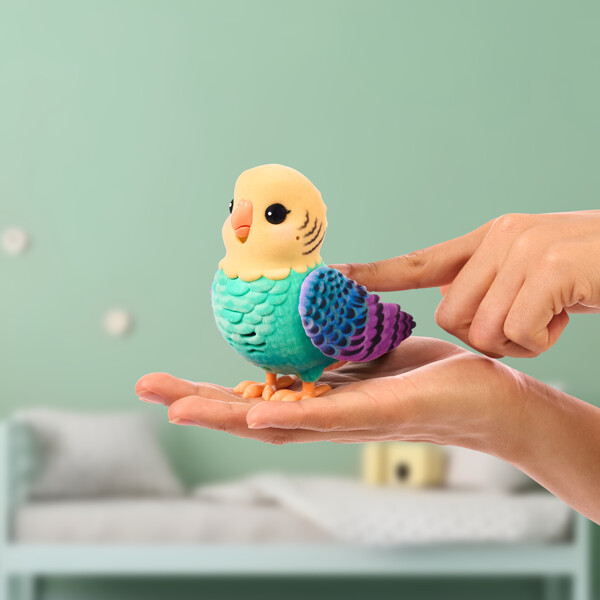 Der Wellensittich Indie ist so interaktiv – der Schnabel bewegt sich wirklich und er liebt es, süße Melodien zu pfeifen und das zu wiederholen, was du sagst! Drücke die obere Taste, um deine Stimme aufzunehmen, und Indie wird sie wiederholen. Drücke die untere Taste, um zu singen, und er pfeift im Takt zurück!