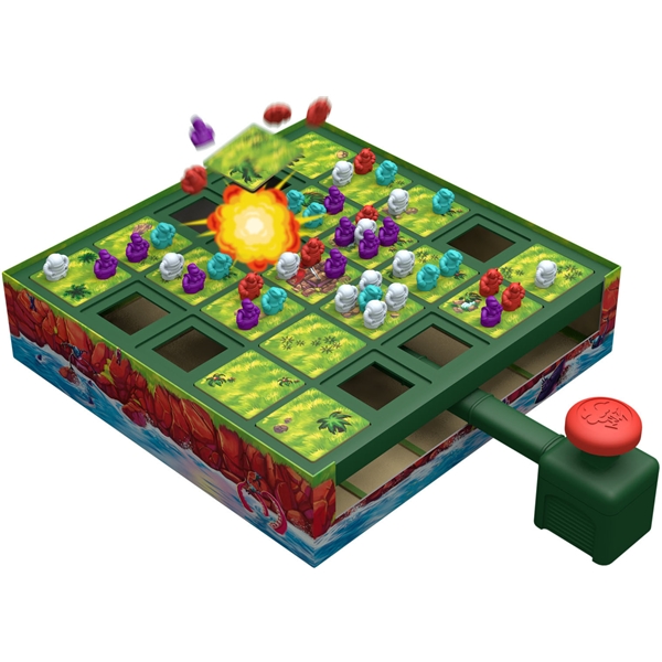 Wirst du bis zum Ende durchhalten oder wird der Eliminator deine Figuren in die Luft schicken? Bewege die Figuren, wirf die Würfel und gewinne Mehrheiten. Erobere das Spielfeld, ein Plättchen nach dem anderen, und gewinne das Spiel!