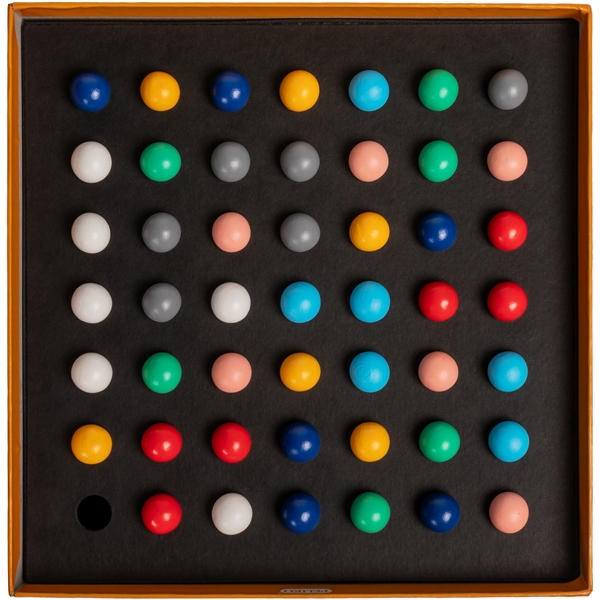 Dies ist ein außergewöhnliches Spiel, völlig geräuschlos. Die Spieler sollen zufällig platzierte Holzkugeln nach Farben mit so wenigen Zügen wie möglich gruppieren. Man spielt abwechselnd und gemeinsam, aber ohne ein Wort zu sagen und ohne mit Sicherheit zu wissen, wie die Mitspieler denken. Stille. Fokus. Spannung.