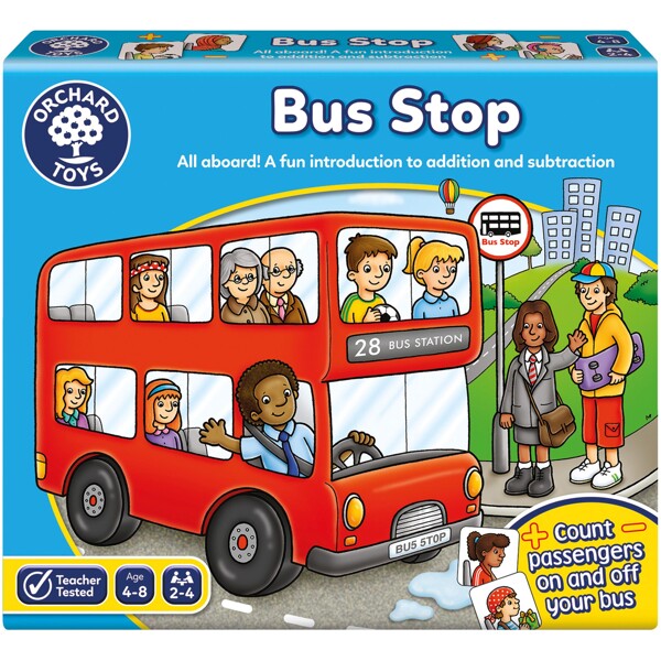 Flitze zur Bushaltestelle und nimm Passagiere auf oder setze sie unterwegs ab. Wirf die Würfel, um deinen Bus über das Spielfeld zu bewegen und lande entweder auf einem Plus- oder Minusfeld. Die Spieler müssen das Rad drehen, um zu bestimmen, wie viele Passagiere ein- oder aussteigen. Der Gewinner ist der Spieler, der die meisten Passagiere in seinem Bus hat, wenn er schließlich die Bushaltestelle erreicht.