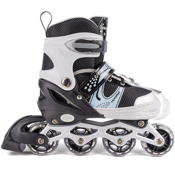 Spezifikationen: Aluminium-Truck, Stahlkugellager, Licht im Vorderrad, Schnürung, doppelseitige Schnalle und Klettverschluss. Flexibler Innenschuh, Bremsklotz auf der Rückseite eines Rollschuhs.