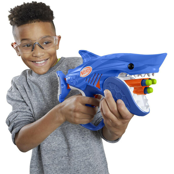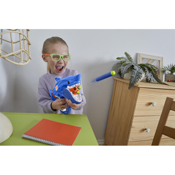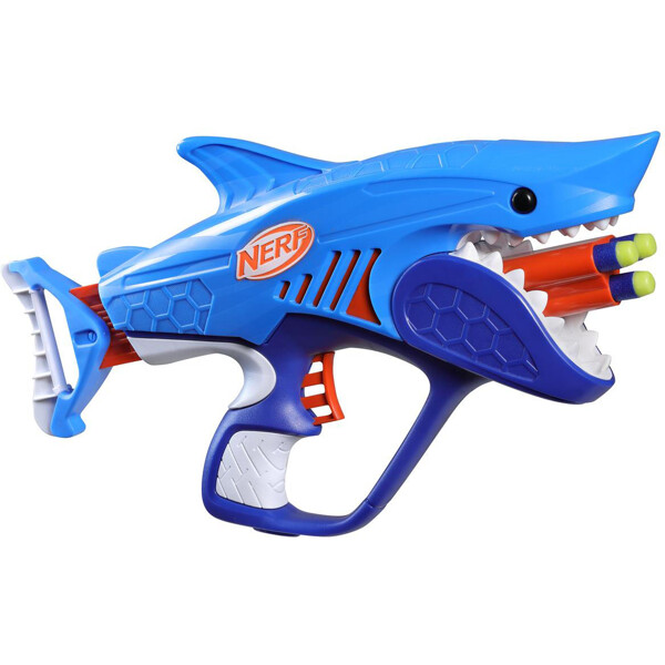 N-Strike Elite Jr. Sharkfire ist Teil der Nerf Junior Wild-Serie, die benutzerfreundlich für kleine Kinder gestaltet ist. Ihr Design stellt sicher, dass selbst die jüngsten Spieler den Nervenkitzel von Nerf-Schlachten eigenständig genießen können. Der Blaster ist leicht und so dimensioniert, dass er bequem in kleine Hände passt, was ihn einfach zu tragen bei Spielen im Garten macht.