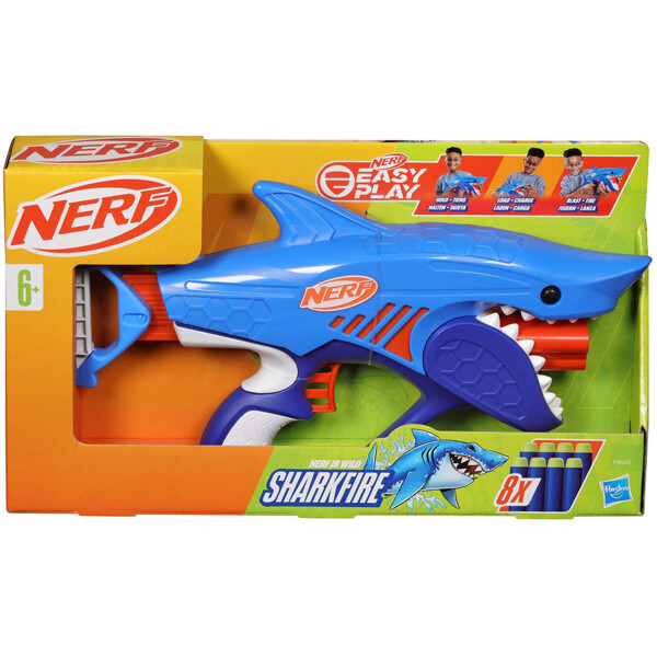 Mit einem frontgeladenen Design ist es einfach, die Darts einzusetzen, und die Griffe erfordern minimalen Zug, was ein müheloses Schießen ermöglicht. Dies macht ihn zur perfekten Wahl für Kinder, die neu im Nerf-Dartspiel sind. Der Sharkfire-Blaster hat ein auffälliges Haidesign mit lebendigen Farben und detaillierten Verzierungen, die das Spielen noch unterhaltsamer machen.