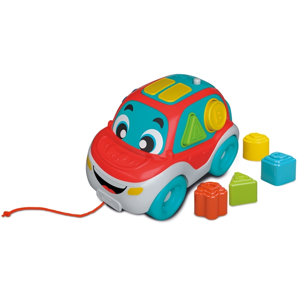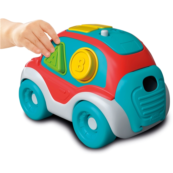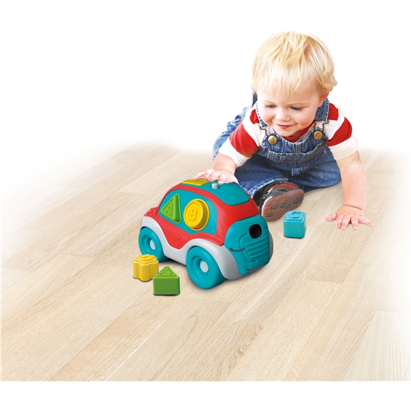 Ein unterhaltsames, sprechendes, interaktives und ziehbares Sortierauto. Ein 3-in-1-Aktivitätsset, das dem Kind die Namen von Formen, Farben und den ersten Buchstaben beibringt. Durch eine akustische Rückmeldung ermutigt, kann das Kind seine manuellen Fähigkeiten mit der Sortieraktivität verfeinern. Wenn die Aktivität abgeschlossen ist, kann das Auto geöffnet werden, um die Formen wieder herauszuholen.