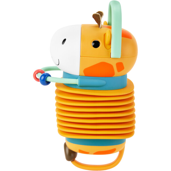 Die fröhliche Giraffe wird garantiert die Aufmerksamkeit des Kindes auf sich ziehen und eine spielerische Einführung in die Welt der Musik bieten. Die Griffe sind leicht für kleine Hände zu greifen. Ihr Baby wird es lieben, neue Geräusche zu entdecken, indem es am Akkordeon zieht. Bunte bewegliche Perlen und gummierte Details helfen dem kleinen Kind, seine Feinmotorik und sensorischen Fähigkeiten zu entwickeln.- Akkordeon mit kinderfreundlichem Klang- Leicht für kleine Hände zu greifen- Gummierte Details angenehm zum Beißen bei Zahnung- Bewegliche Perlen- Mit feuchtem Tuch abwischbar- Größe: 11 x 8 x 21 cmDas gesamte Sortiment von Skip Hop entspricht den REACH- und EU-Standards und enthält keine verbotenen Chemikalien.