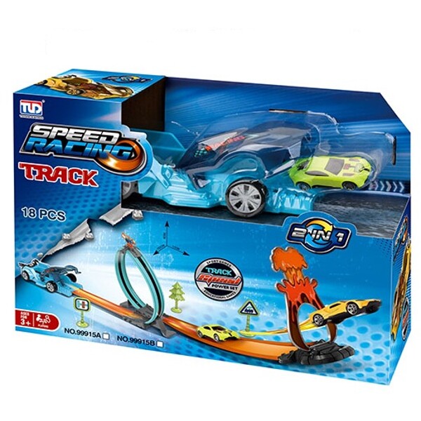 Ein Rennwagen mit Auto - Schieße das Auto aus dem Rennwagen, durch die Schleife, um es dann davonfliegen zu sehen!