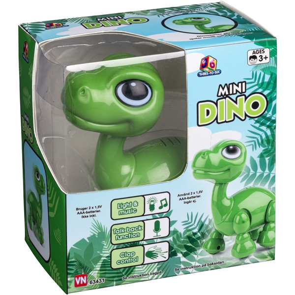 3-2-6 Mini Dino Robot ist ein süßer kleiner Roboter mit leuchtenden Augen, Geräuschen und Musik. Er kann vorwärts, rückwärts gehen und tanzen, wenn du klatschst, und er wiederholt, was du sagst.