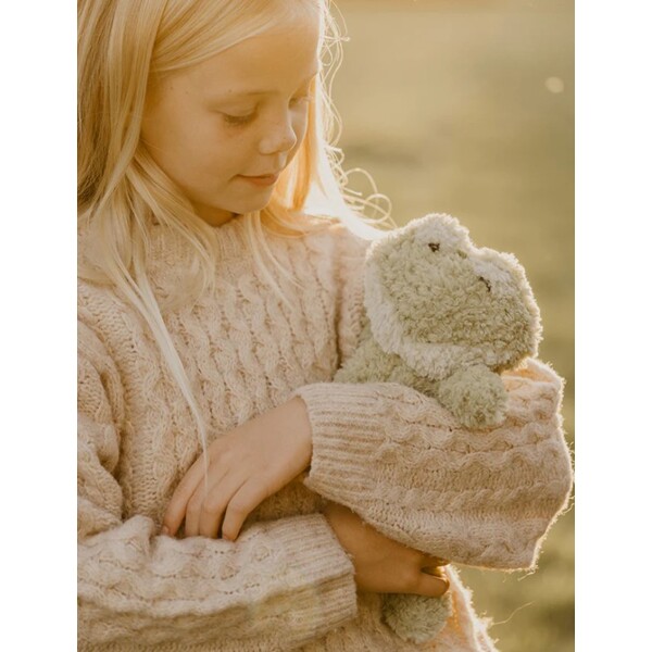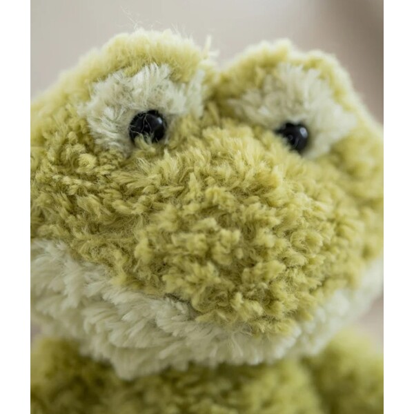 Mit seiner herrlichen limonengrünen Farbe und dem weichen Fell wird dieser Frosch schnell zum Favoriten für Spiel und Kuscheln. Sein verspielter Ausdruck und das retroinspirierte Design machen ihn zu einer charmanten Ergänzung in der Kuscheltier-Sammlung des Kindes.