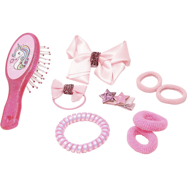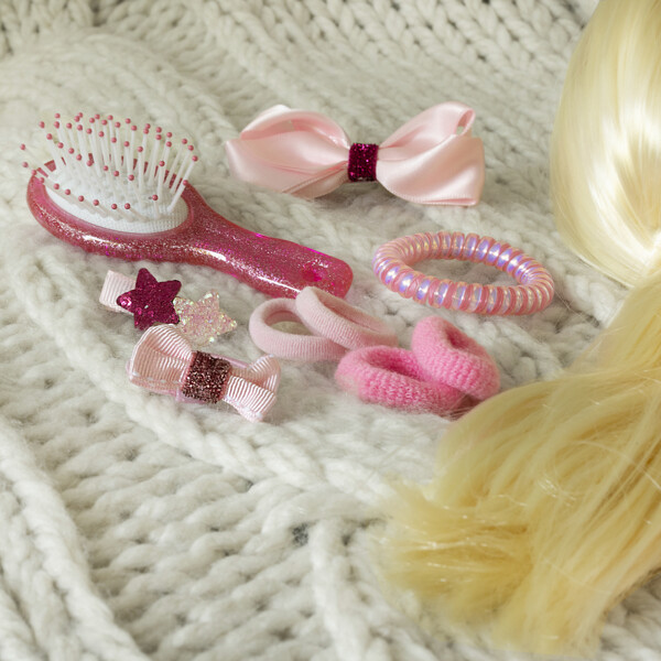 Haarset in fröhlichen, verspielten Farben, passend für Puppen in verschiedenen Größen.