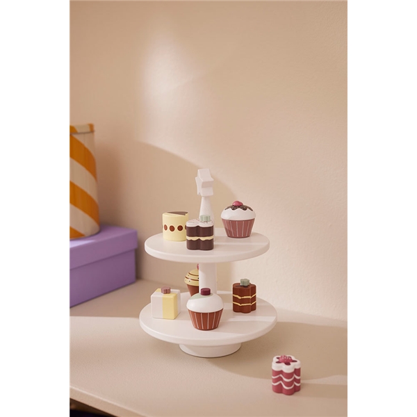 Kids Concept Kuchenständer weiß - Kuchenständer aus Holz mit einem schönen Stern an der Spitze. Kombinieren Sie ihn gerne mit anderen Produkten aus dem Kid's Bistro Konzept, wie zum Beispiel unseren Gebäckstücken, Keksen oder Spielzeug-Süßigkeiten. Maße: 23x17x15 cm. Material: MDF/Schima.