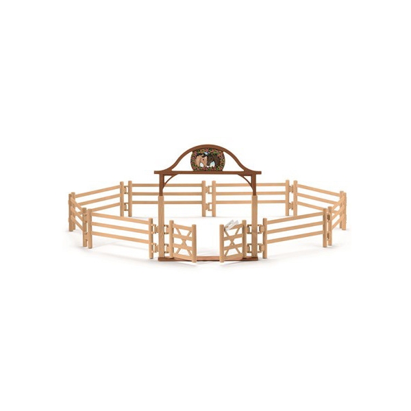 Schleich 42434 Paddock ist ein detailreiches und schönes Set von Schleich, mit dem du einen eingezäunten Bereich schaffen kannst, in dem deine Lieblingspferde grasen, spielen und herumlaufen können.Wenn das Wetter nicht zum Ausreiten geeignet ist, sind Paddocks eine ideale Möglichkeit, den Pferden so viel Platz wie möglich zu bieten.Pferde brauchen frische Luft und ausreichend Platz für Bewegung, und deshalb finden echte Pferdeliebhaber, dass ein Paddock notwendig ist. Im Paddock kann dein geliebtes Pferd frei herumlaufen, während du zusiehst. Du kannst den Paddock als Zaun aufstellen, damit deine Pferde herumlaufen können, oder die Teile verwenden, um zusätzliche Boxen zum Stall hinzuzufügen.Schleich Paddock enthält 12 Teile.